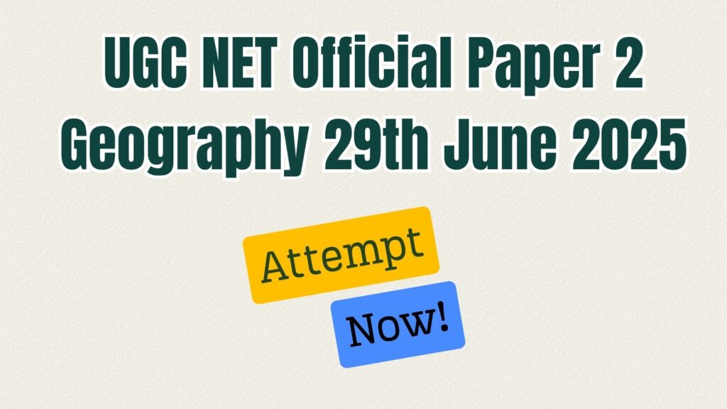 Attempt the official UGC NET Geography Paper 2 held on 29th June 2025. This test is designed to give you a real exam-like experience. All questions are based on the actual paper and are followed by detailed explanations to help you understand the correct answers thoroughly. Perfect for self-assessment, revision, and boosting your conceptual clarity.